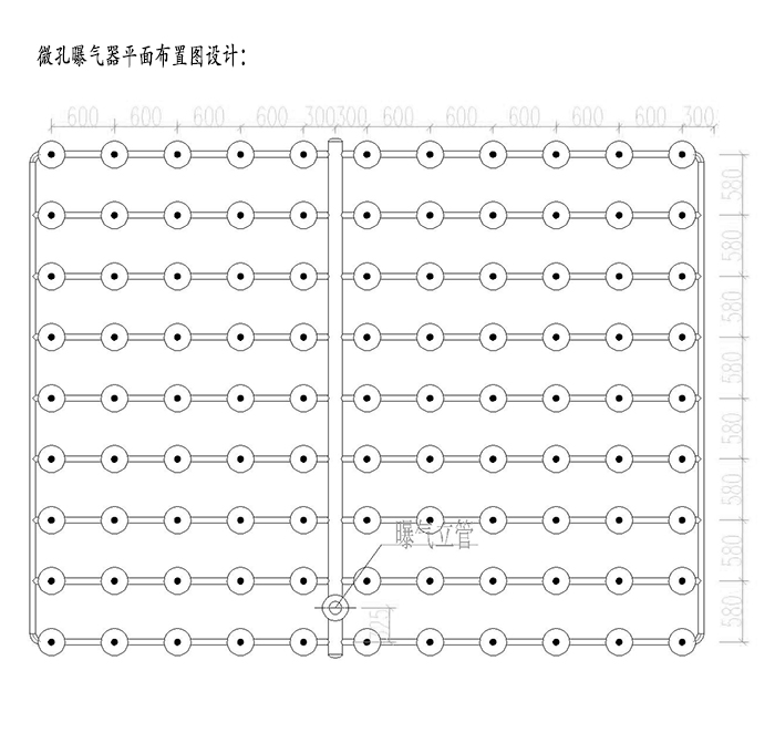 空氣管設計應考慮壓力平衡,最好聯成環狀網,每組進氣管應設置閥門,便于調節空氣量。空氣管設計流速:干管為10-15米/秒;支管為5米/秒。曝氣器表面距池底安裝高度:270mm、250mm,推板式為200mm。