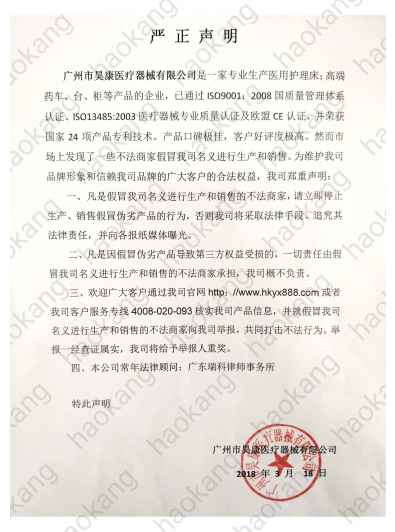 廣州市昊康醫(yī)療器械有限公司嚴正聲明